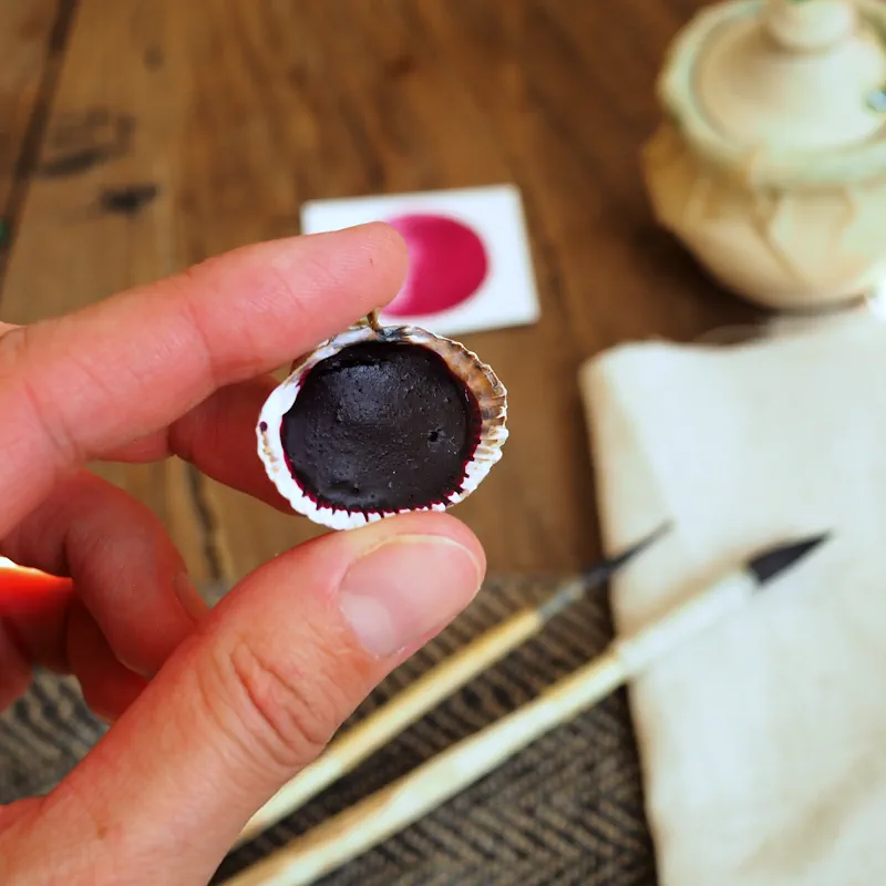 Coquillage de peinture médiévale artisanale naturelle fait main – Cochenille nuance rose