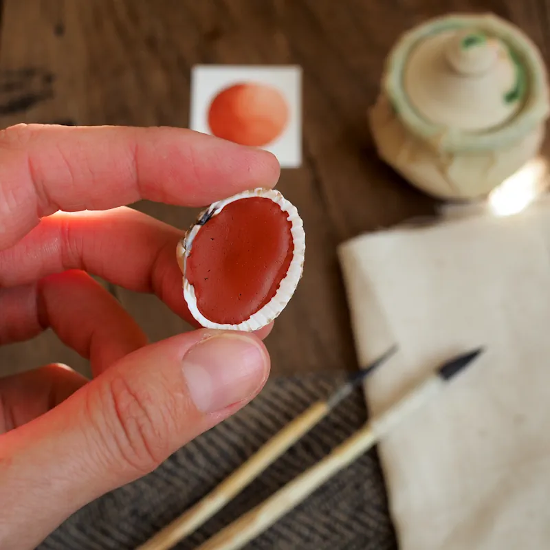 Nos peintures et aquarelles sont fabriquées dans notre atelier breton à Quimper. Chaque couleur est broyée à la main avec une molette de verre puis les godets sont rempli manuellement en plusieurs fois et séché pendant au moins trois semaines.