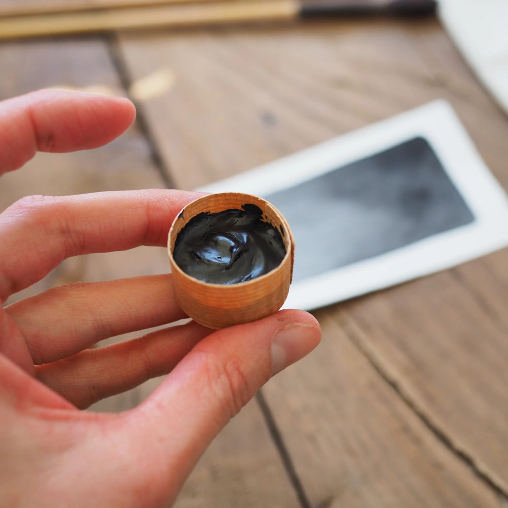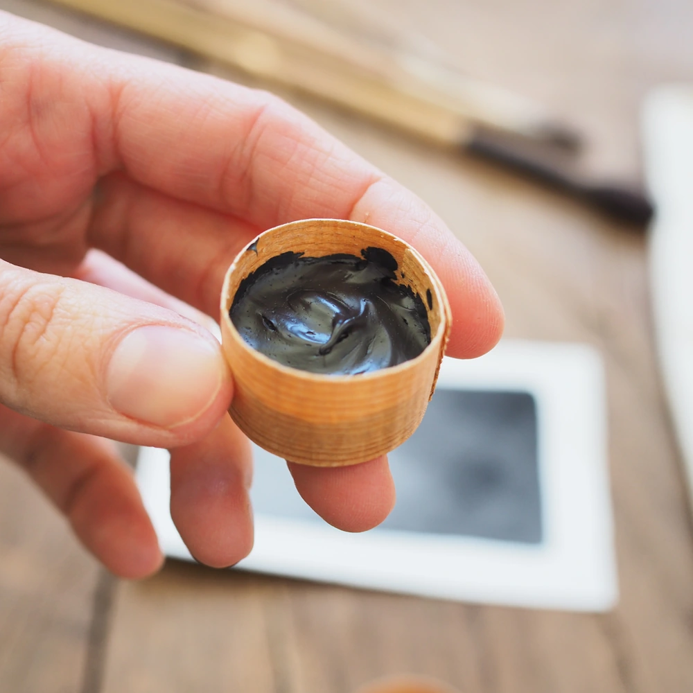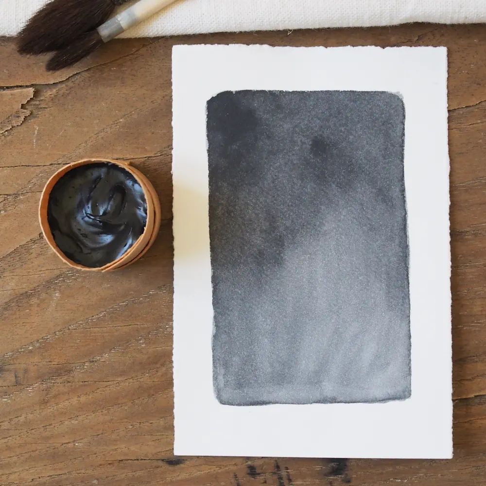 Réhydratée avec plus de liquide qu’une aquarelle classique, ce noir peut être utilisé comme de l’encre. Utilisable au pinceau pour l’illustration et l’enluminure comme à la plume pour la pratique de calligraphie.